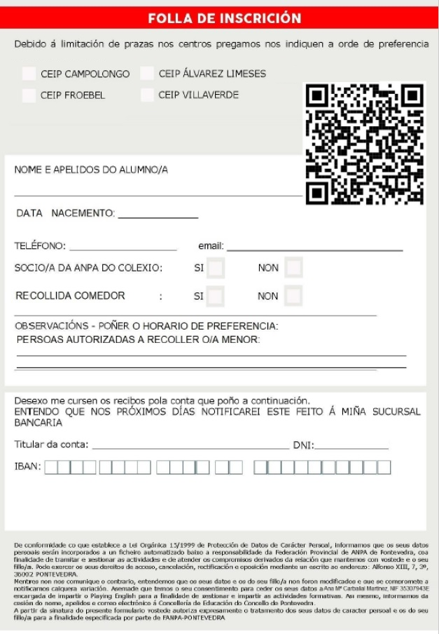 - As familias inscritas na ANPA teñen desconto na cuota mensual.